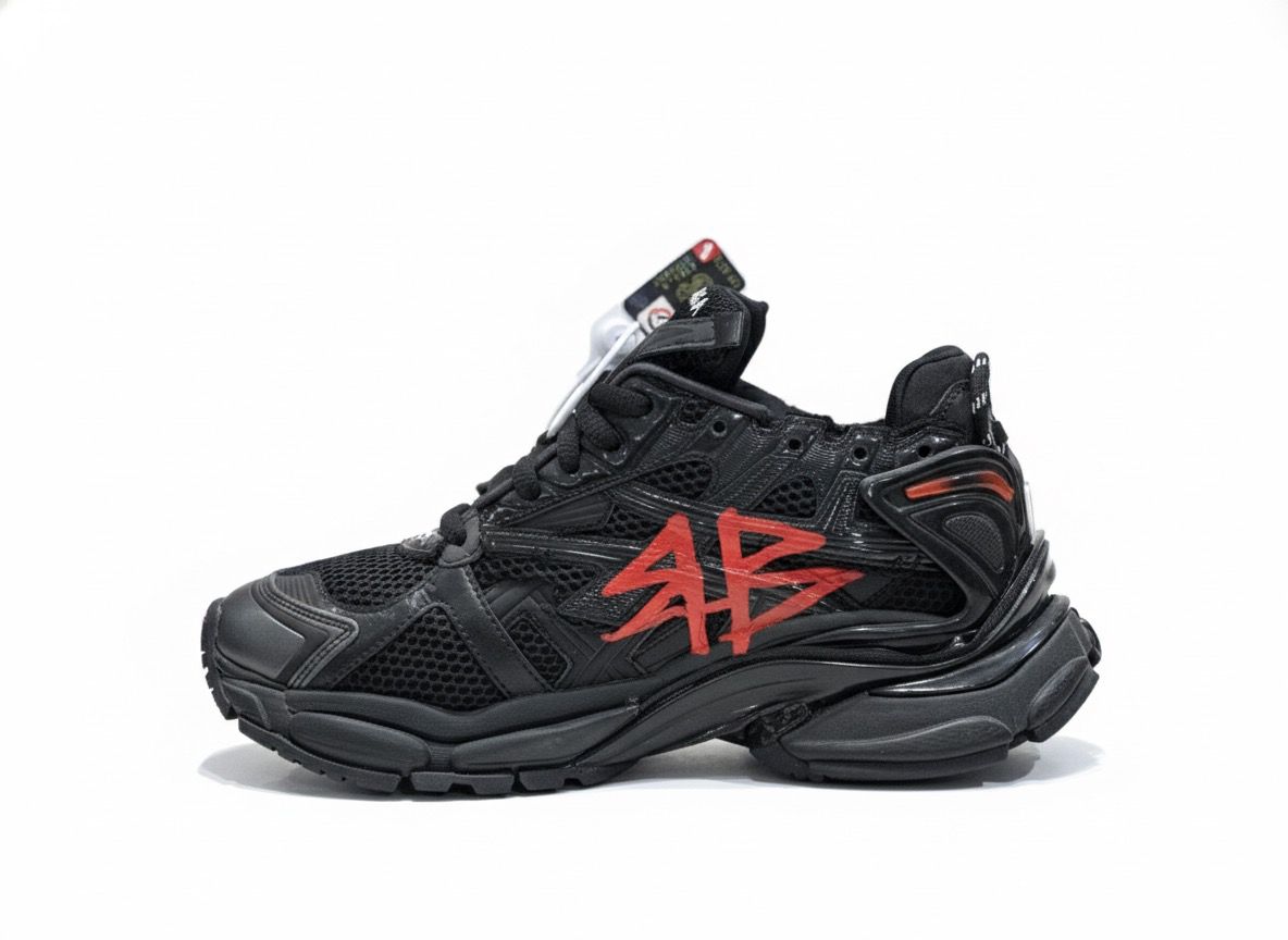 Balenciaga Runner Graffiti‑inspired sneaker in black, featuring artistic street‑style detailing.