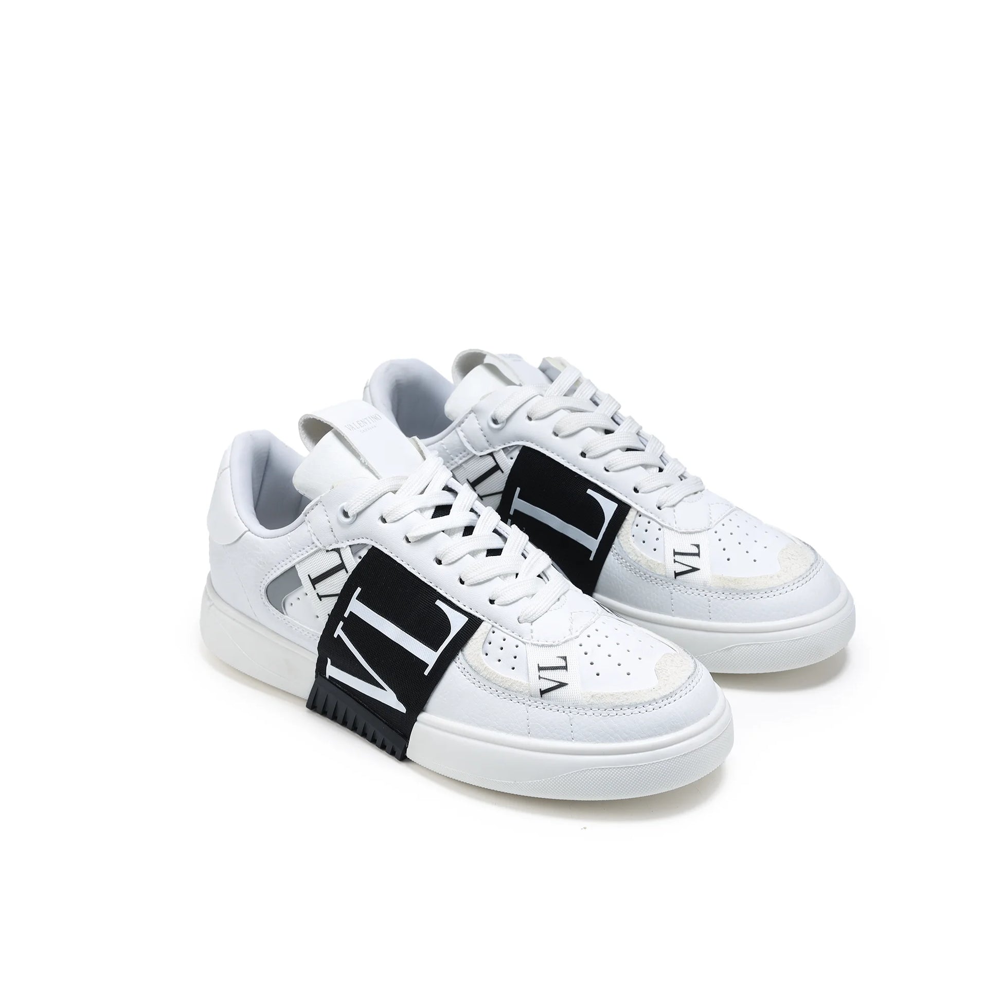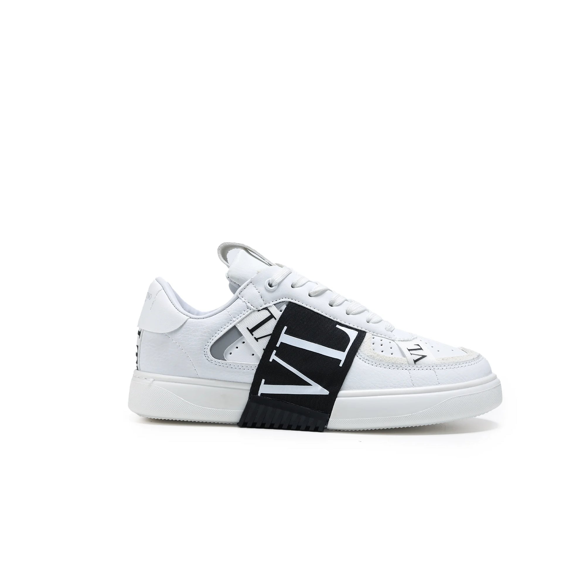 Valentino Garavani sneaker, designed for a distinct modern look and premium feel. This low-top silhouette is defined by a bold branded band wrapping across the upper, creating a striking visual contrast. Crafted with a smooth, structured finish and perforated details for breathability, it sits on a durable rubber sole for lasting comfort.